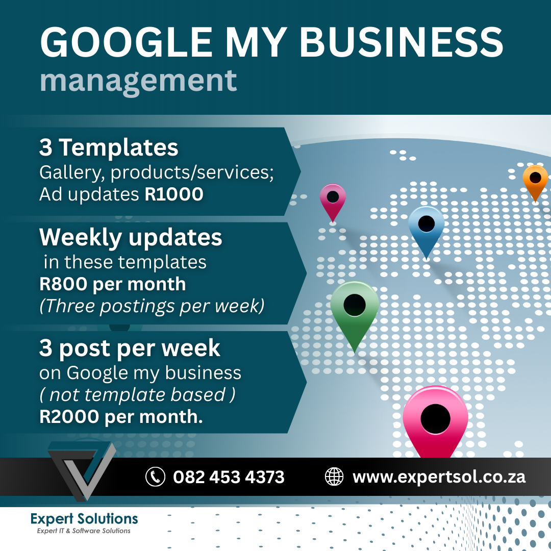 If you have an existing Google my business, and need help to fix the setup. We can assist with that for only R400 once off upfront payment.